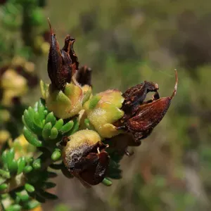 Aspalathus Carnosa (Aspalathus Carnosa) is a perennial shrub in the Fabaceae family with moderate care difficulty. It requires low watering and full sun or partial shade light in USDA hardiness zones 9-11. This plant is safe for cats and dogs.