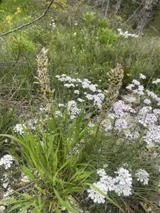 Asphodeline taurica is a tuberous perennial herbaceous plant native to Eastern Mediterranean and the Caucasus region, known for its dense racemes of white to cream star-shaped flowers and grass-like foliage.