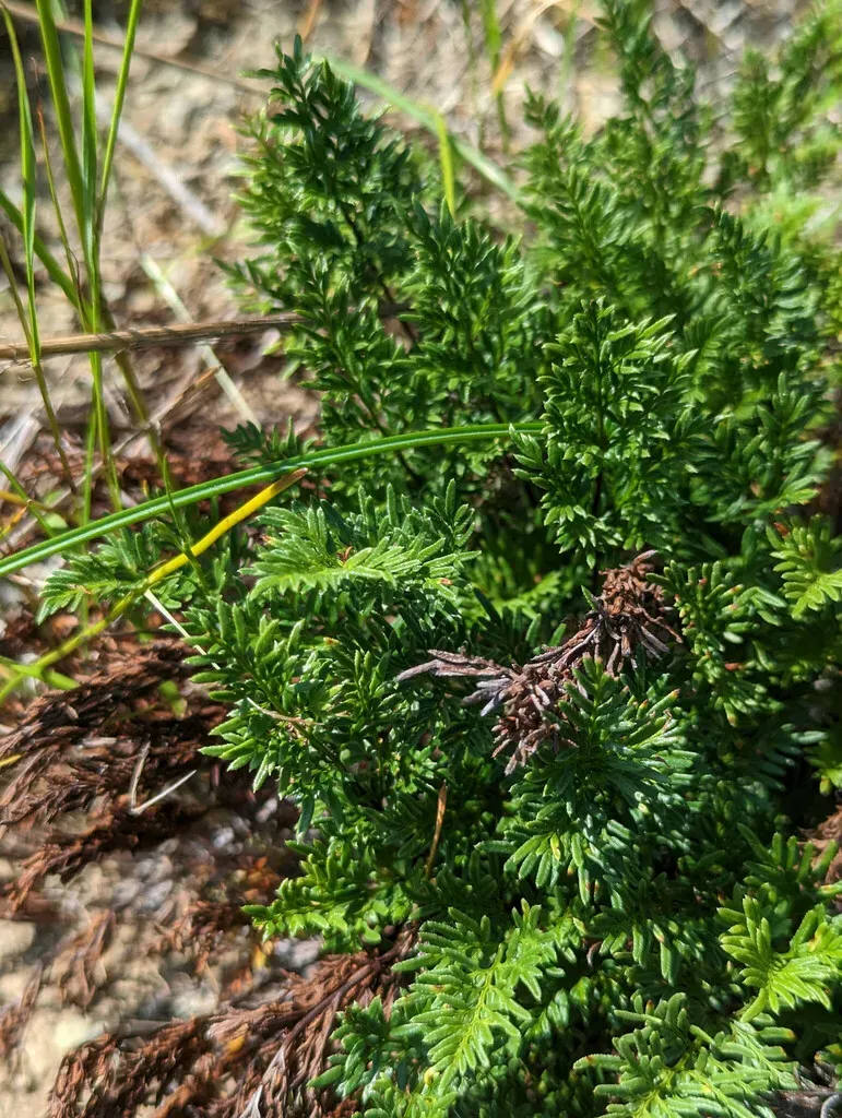 Aspidotis densa is a species of fern in the Cheilanthoid subfamily, known for its dense, lace-like fronds and ability to grow in rocky, serpentine soils.