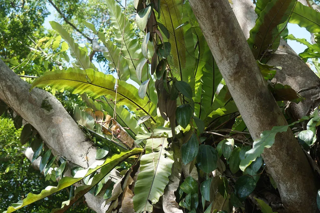 Asplenium nidus is a tropical, evergreen fern known for its rosette of broad, lance-shaped, glossy green fronds.