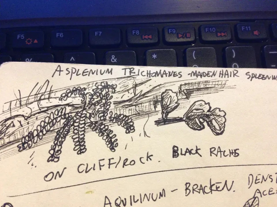 A small, delicate evergreen fern commonly found on rocky, shaded slopes and cliffs.