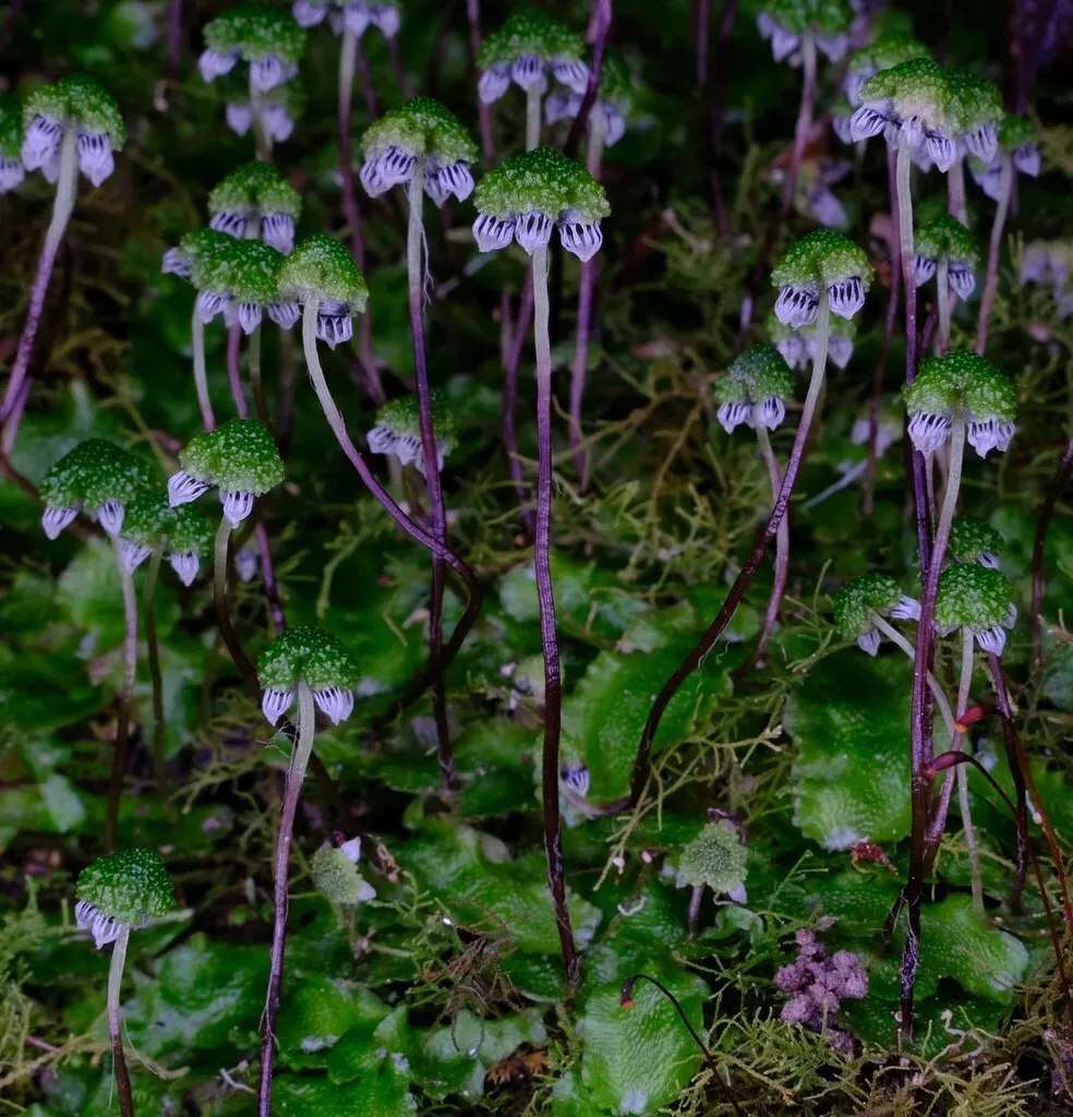Licorice Strap (Asterella Drummondii) is a perennial moss in the Aytoniaceae family with moderate care difficulty. It requires moderate watering and partial shade or filtered_light light in USDA hardiness zones 8-11. This plant is safe for cats and dogs. It can be grown indoors.