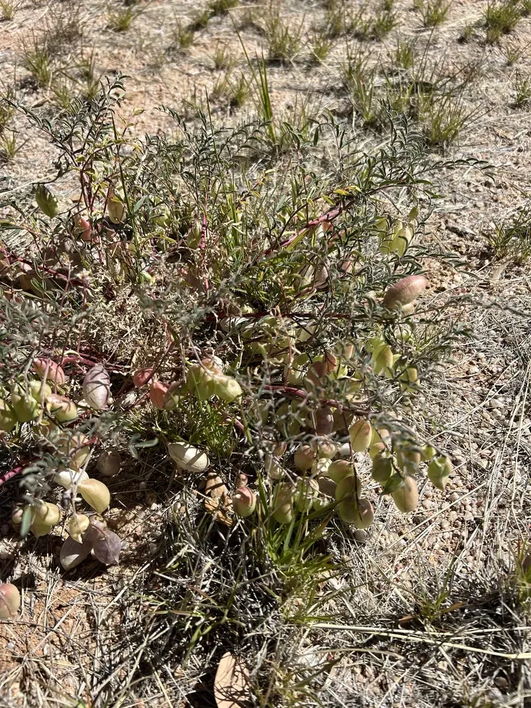 Astragalus allochrous is a low, commonly coarse, biennial or short-lived perennial herb characterized by compound leaves with narrow to somewhat broadened leaflets covered with short stiff hairs.