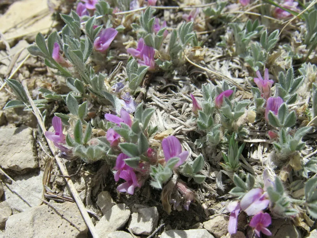 Astragalus tridactylicus is a perennial herbaceous plant native to Wyoming and Colorado, known for its mat-forming growth habit and trifoliate leaves.
