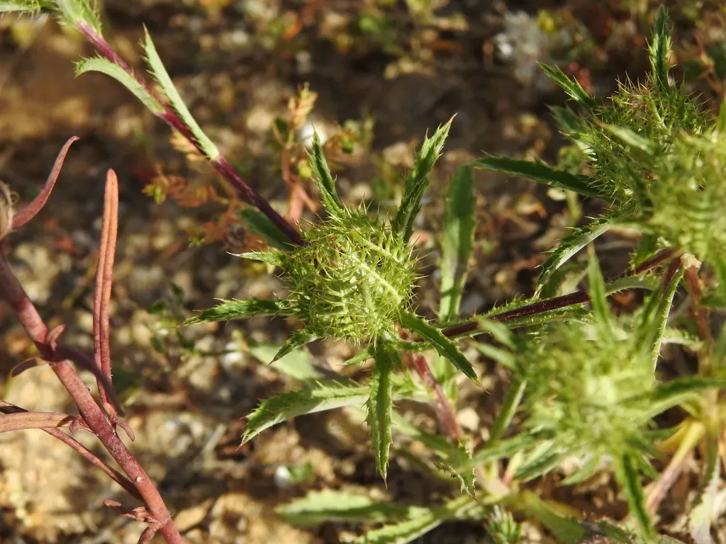 Atractylis cancellata is a small, annual herbaceous plant in the family Asteraceae, notable for its unique cage-like involucre around the flower heads.
