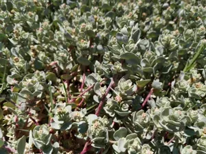 Atriplex leucophylla is a perennial herb native to the coastline of California and Baja California, known for its sprawling growth and silvery-white foliage.