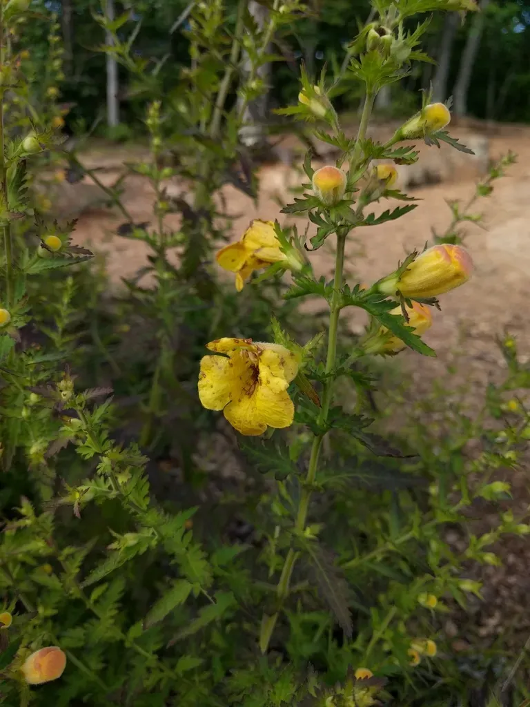 Aureolaria pedicularia is a hemiparasitic plant native to eastern North America, recognized by its yellow tubular flowers and fern-like leaves.