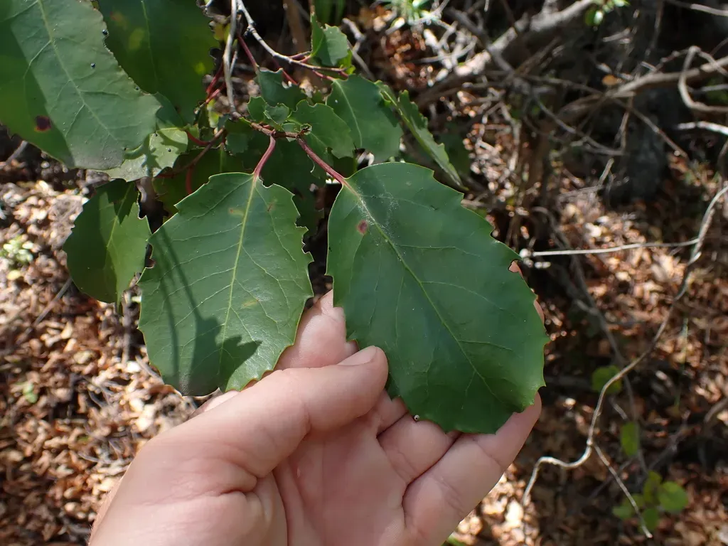 Azara petiolaris is a small evergreen tree known for its fragrant flowers and smooth grey bark, native to central Chile.
