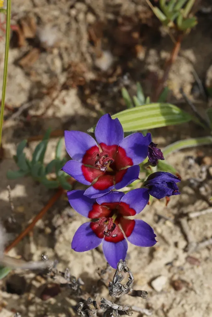 Wine-cup Baboon-root (Babiana Rubrocyanea) is a plant in the Iridaceae family with moderate care difficulty. It requires moderate watering and moderate light.