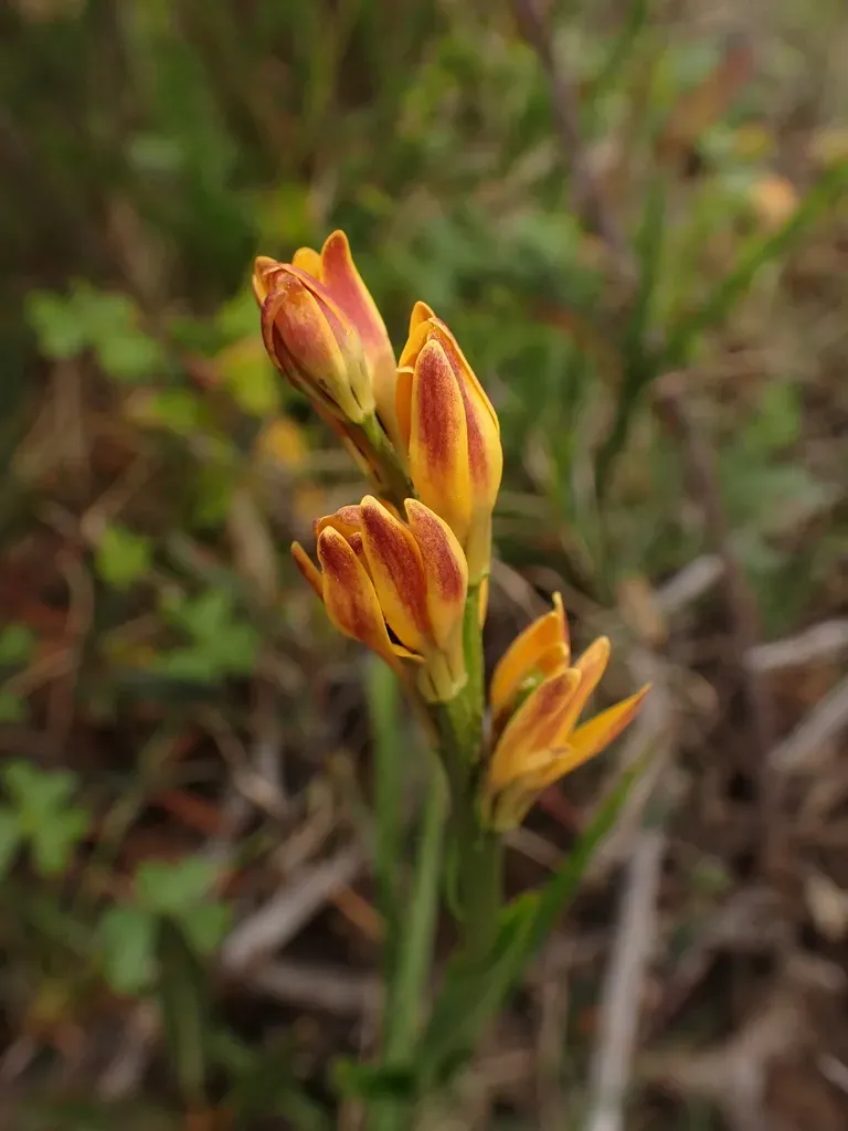 Baeometra uniflora is a perennial bulbous plant native to South Africa, known for its bright orange star-shaped flowers that bloom in spring.