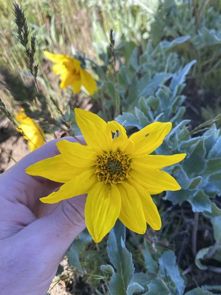 Hoary Balsamroot (Balsamorhiza Incana) is a plant in the Asteraceae family with moderate care difficulty. It requires moderate watering and moderate light.