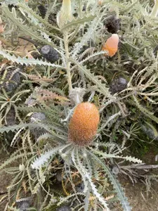Woolly Orange Banksia (Banksia Victoriae) is a plant in the Proteaceae family with moderate care difficulty. It requires moderate watering and moderate light.