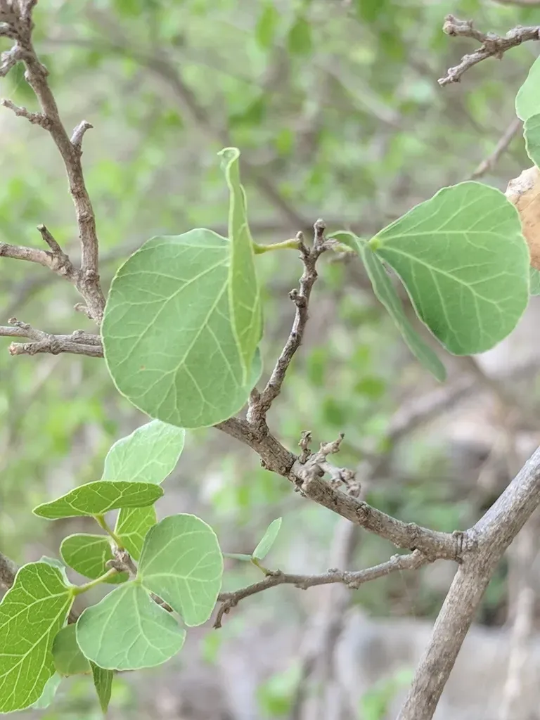 Bauhinia lunarioides is a small deciduous shrub or tree native to Texas, known for its attractive bilobed leaves and white to pink flowers that bloom in late winter or early spring.
