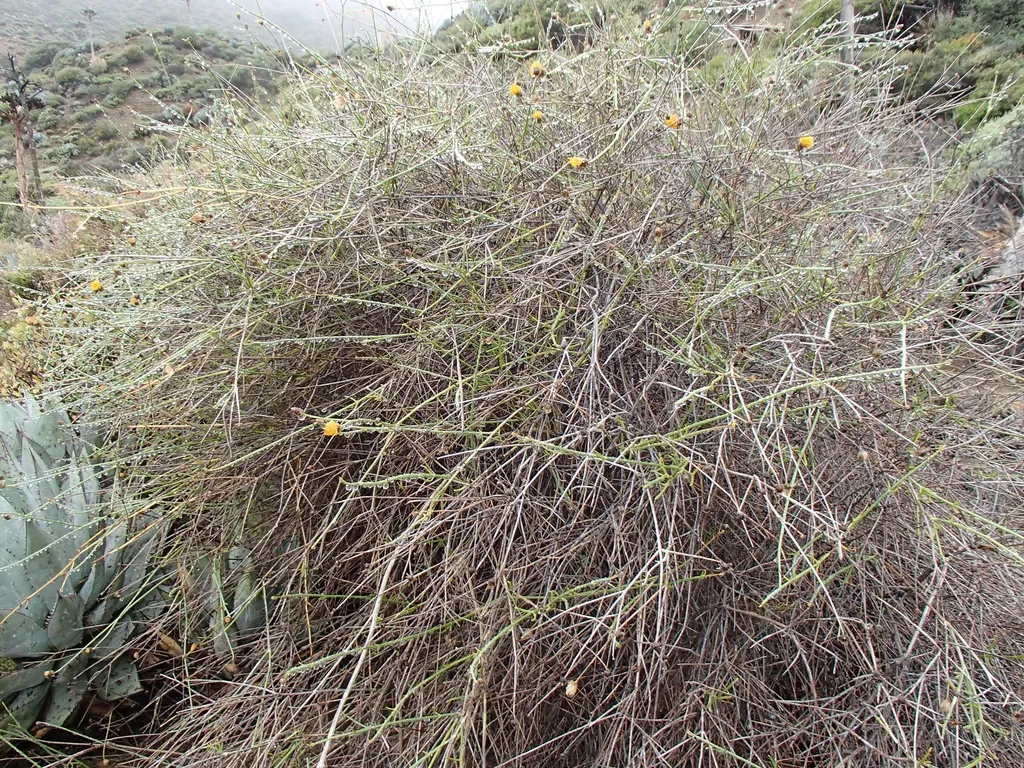 Bebbia juncea is an aromatic desert shrub native to the southwestern United States and northern Mexico, known for its slender, woody stems and plentiful yellow discoid flowers.