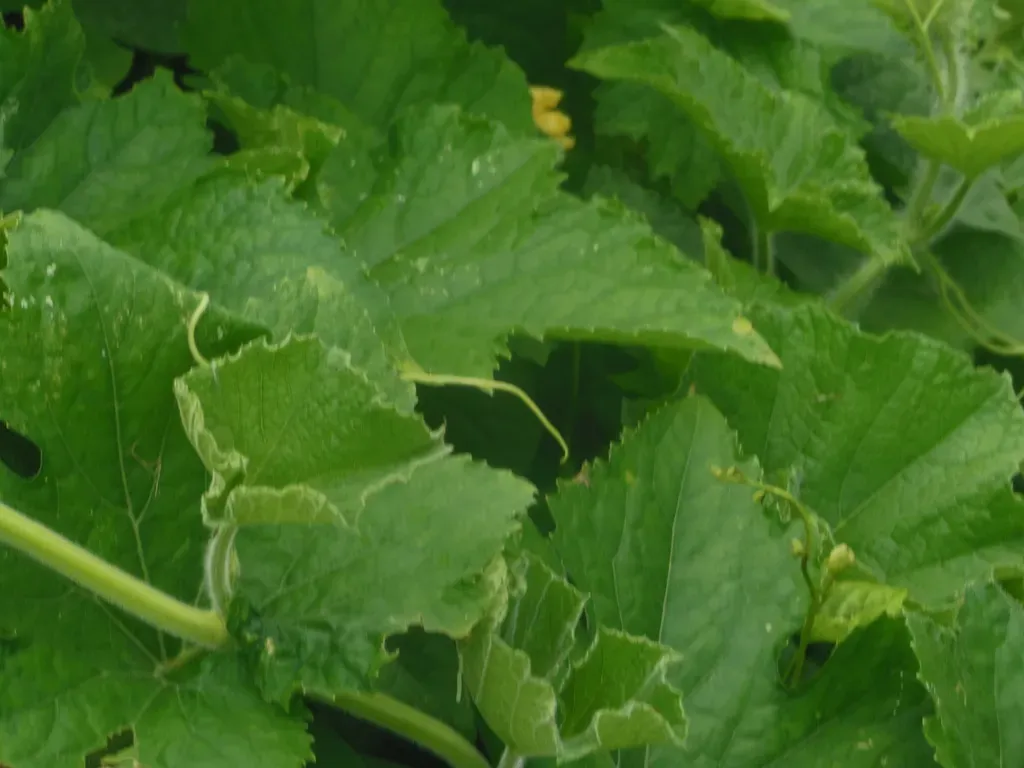 Benincasa hispida is a robust, annual climbing vine native to Southeast Asia, known for its large edible fruits covered with a waxy coating.