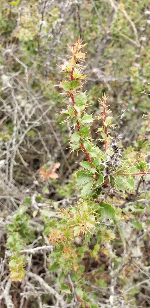 Berberis actinacantha is a species of flowering plant endemic to north and central Chile, known for its rigid, crooked branchlets and variable spines.