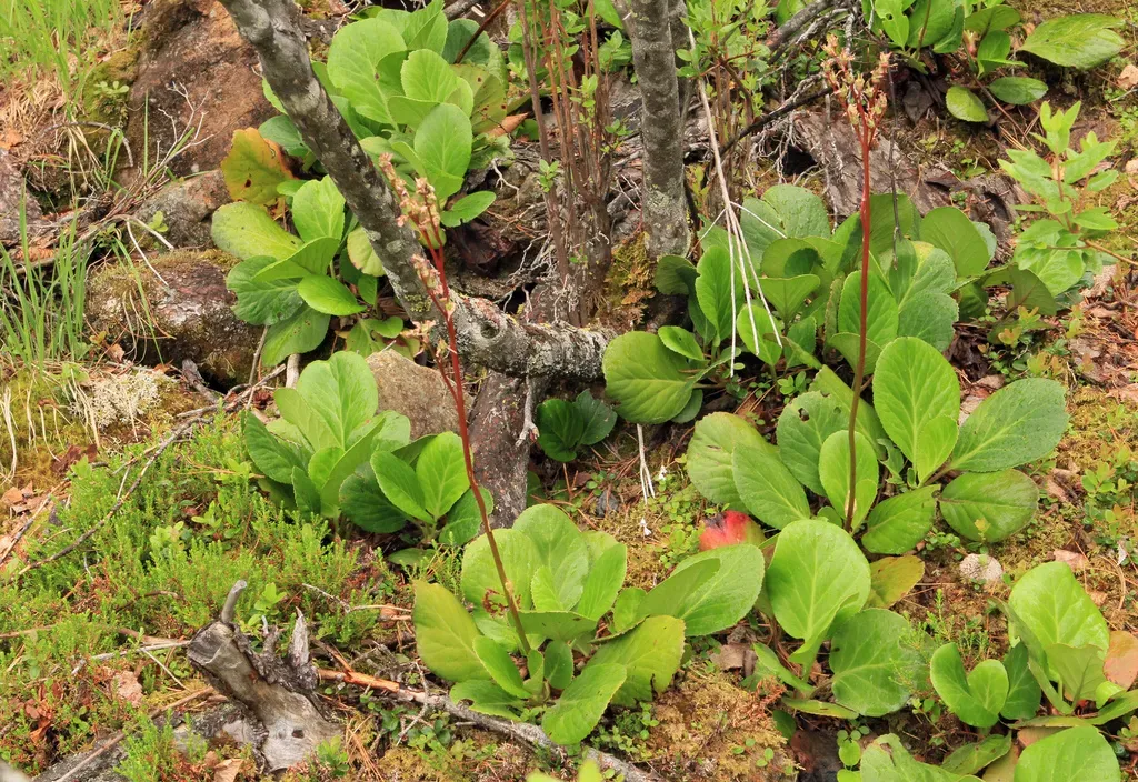 Heart-leaved Bergenia (Bergenia Crassifolia) is a perennial groundcover in the Saxifragaceae family with easy care difficulty. It requires moderate watering and partial shade or full shade or dappled_shade light in USDA hardiness zones 3-8. This plant is safe for cats and dogs.