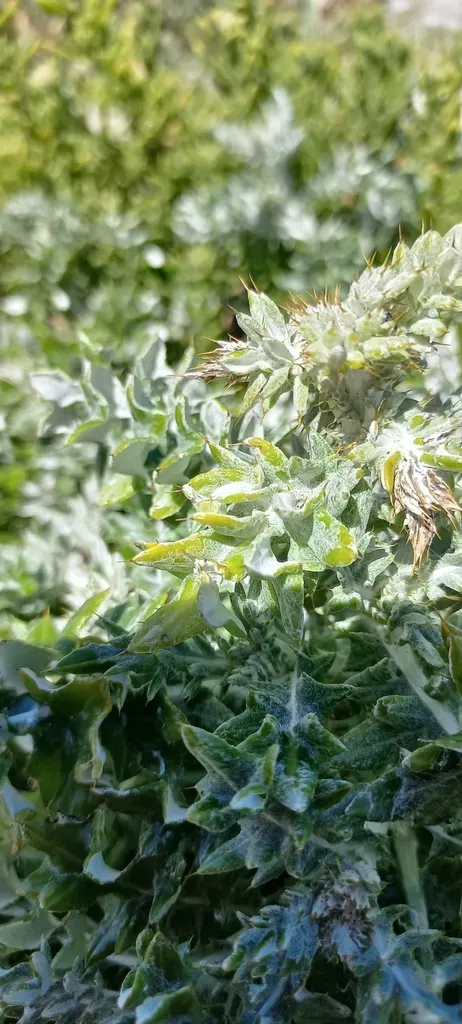 Berkheya rigida is a perennial thistle native to southern Africa, characterized by stiff, woody stems and thick, leathery leaves.