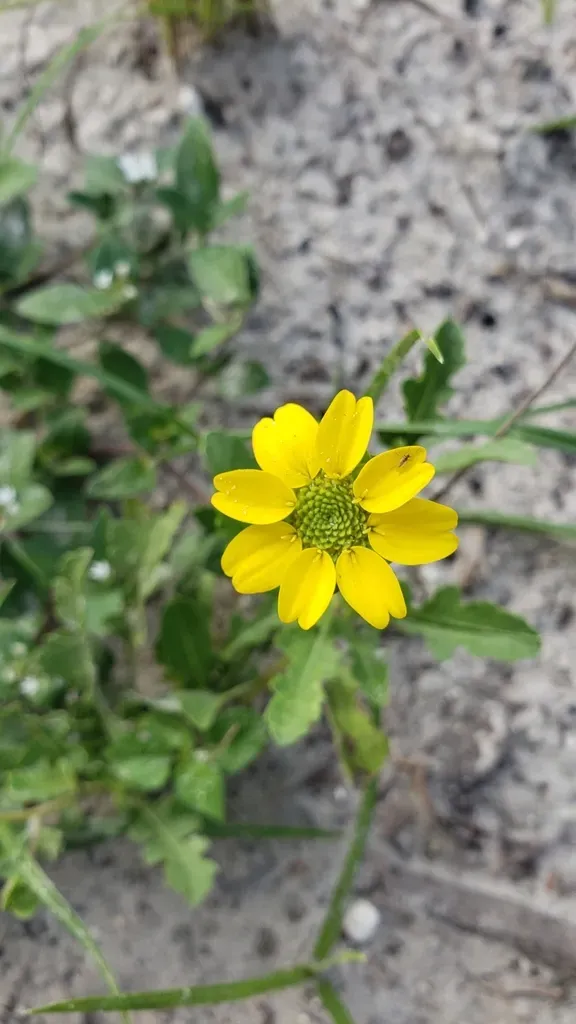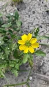 Berlandiera subacaulis is a perennial herbaceous wildflower native to Florida, known for its yellow flowers and winter dormancy.