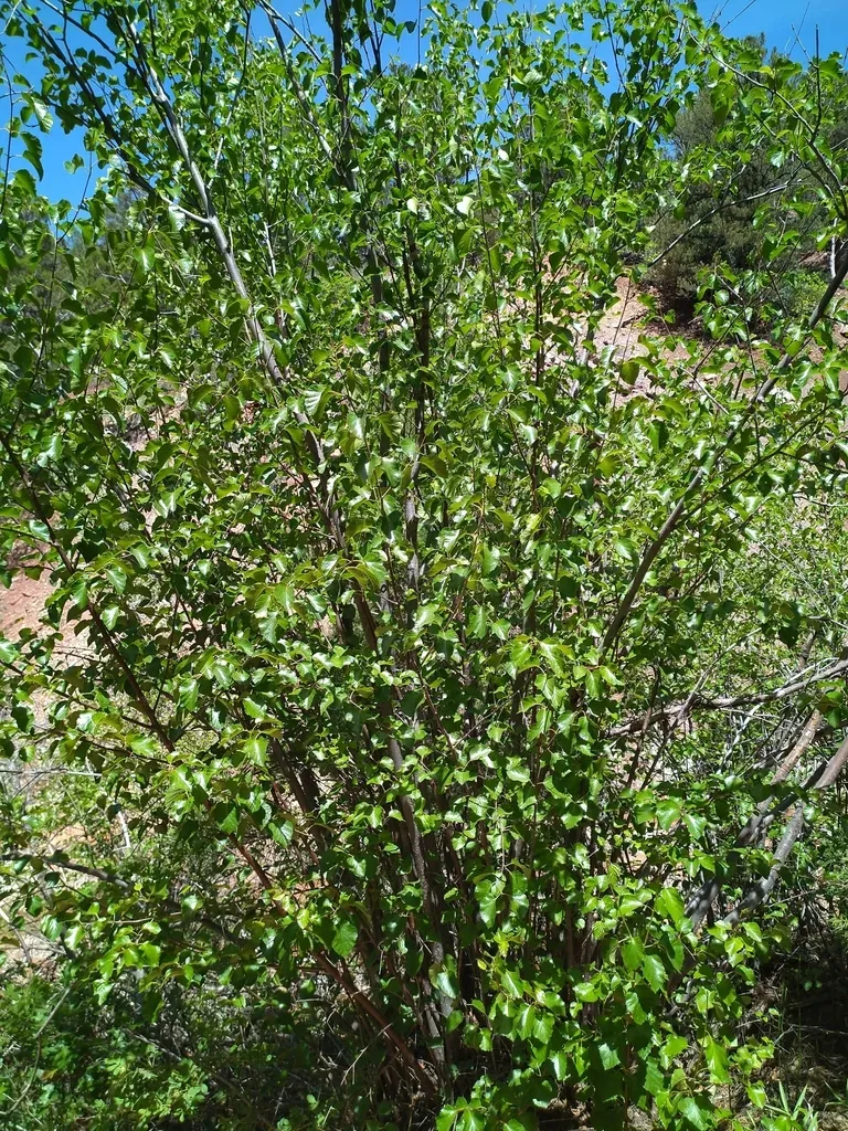Betula occidentalis is a broadleaf deciduous shrub or small tree native to riparian woodlands of western North America, often forming clumps or thickets.