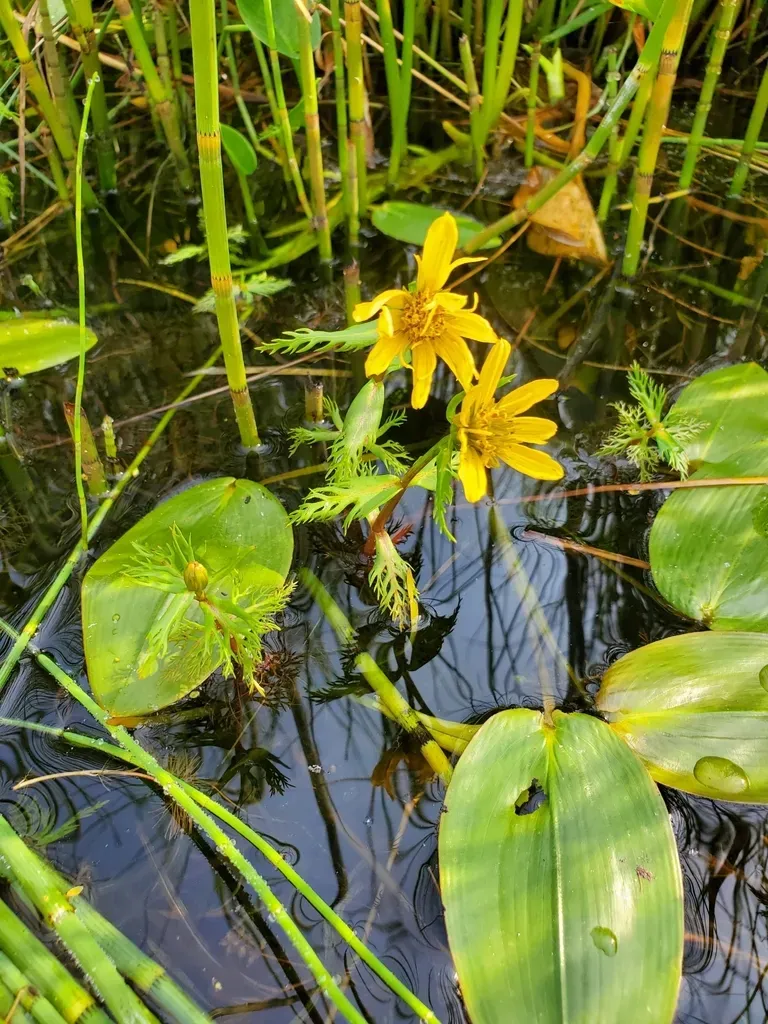 Bidens beckii is a perennial aquatic herb in the Asteraceae family, native to North America, commonly found in shallow waters like lakes, ponds, and slow-moving rivers.