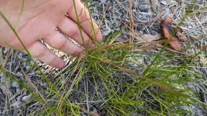 Nuttall's Rayless Goldenrod (Bigelowia Nuttallii) is a perennial herb in the Asteraceae family with easy care difficulty. It requires moderate watering and full sun light in USDA hardiness zones 7-9. This plant is safe for cats and dogs.