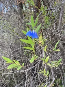 Billardiera fusiformis is a long-lived, evergreen climbing shrub native to Australia, known for its twining stems and attractive blue to purple bell-shaped flowers.