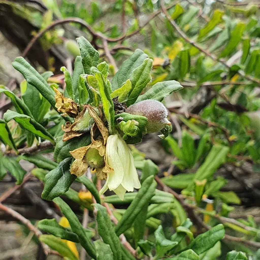 Billardiera scandens is an evergreen sprawling groundcover or climber with wiry stems, known for its glossy foliage and edible berries.
