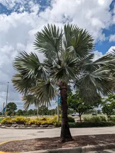 A large, solitary palm native to western Madagascar, known for its striking silver-blue fan-shaped leaves and robust trunk.