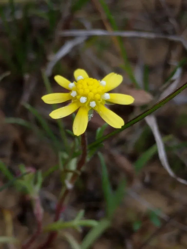 Common Stickyseed (Blennosperma Nanum) is a annual herb in the Asteraceae family with easy care difficulty. It requires moderate watering and full sun light in USDA hardiness zones 9-11. This plant is safe for cats and dogs.