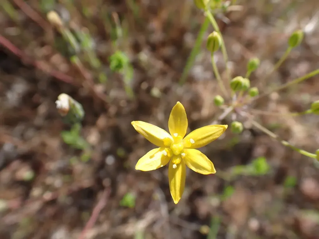 Bloomeria clevelandii is a rare perennial herb native to California, known for its golden star-shaped flowers.