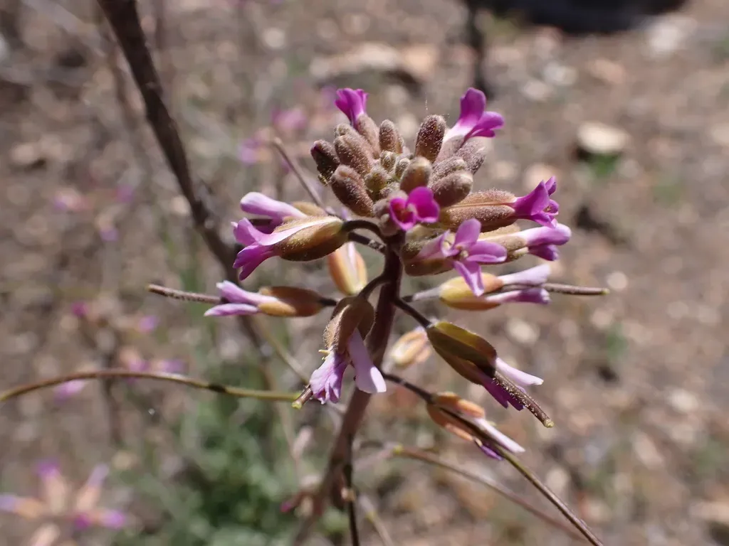 Boechera californica is a native perennial herb found primarily in Southern and Central California, thriving in rocky canyons, gravelly places, washes, dry banks, and chaparral habitats.