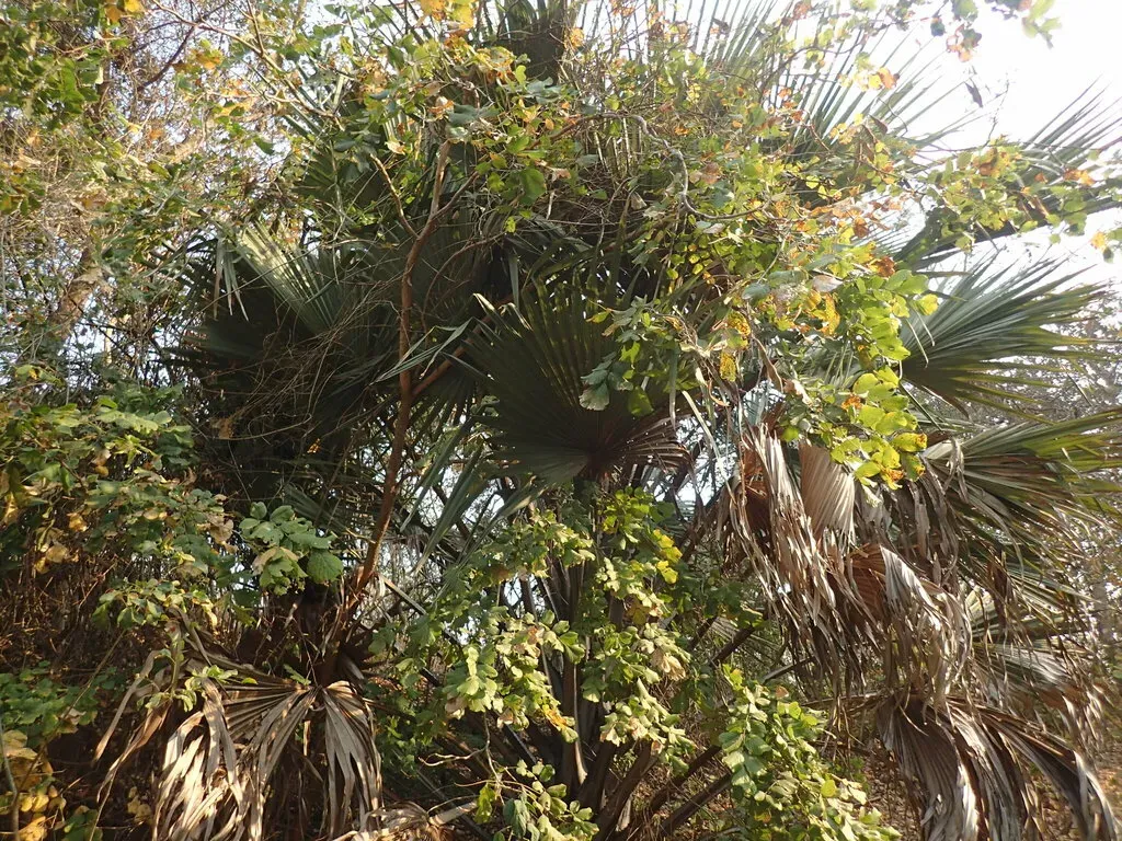 A massive, robust palm native to tropical Africa, known for its fan-shaped leaves and edible fruits.