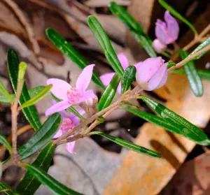 Boronia rosmarinifolia is a shrub native to eastern Australia, known for its aromatic leaves and attractive pale to bright pink flowers.