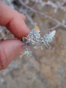 Brickellia nevinii is a shrub native and endemic to California, known for its gray woolly foliage and delicate flowers.
