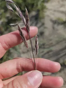 Bromus pumpellianus is a perennial, rhizomatous grass native to northern North America, characterized by hairy leaves and stem nodes.