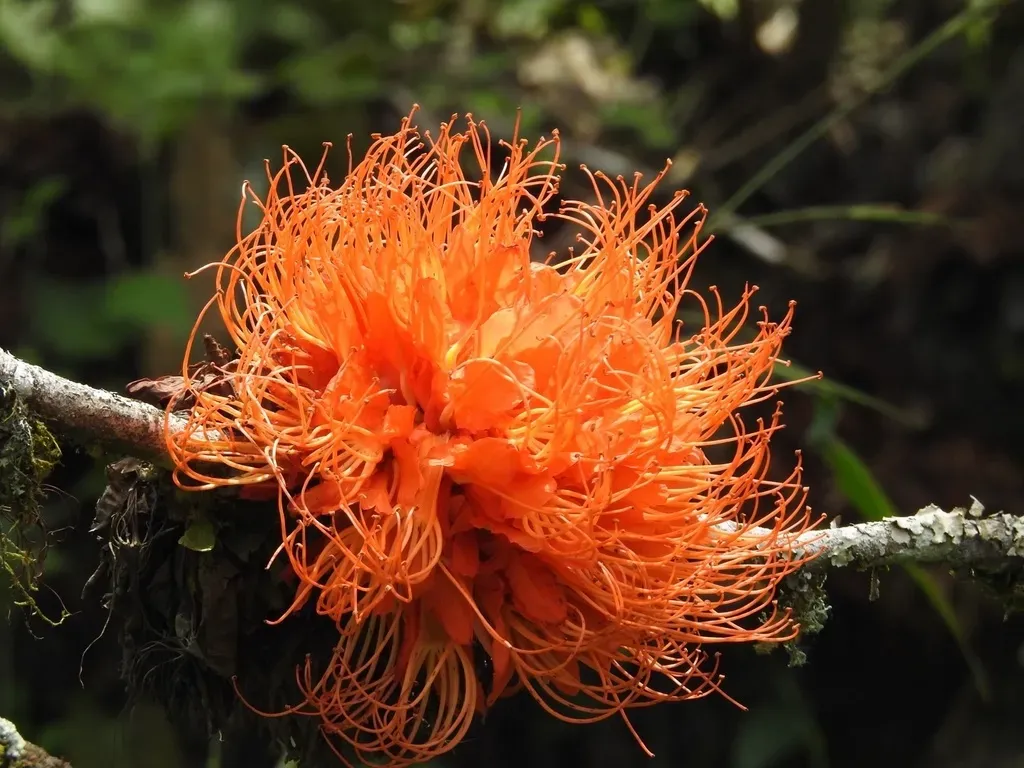 Brownea macrophylla is an evergreen shrub or small tree known for its dense, umbrella-like crown and striking flame-colored flowers.