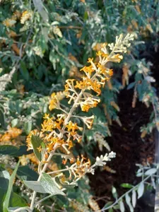 Buddleja madagascariensis is an evergreen shrub native to Madagascar, known for its bushy habit and attractive, fragrant flowers.