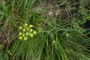 Bupleurum multinerve is an erect, herbaceous perennial plant with 2-3 or more stems that can be branched or unbranched.