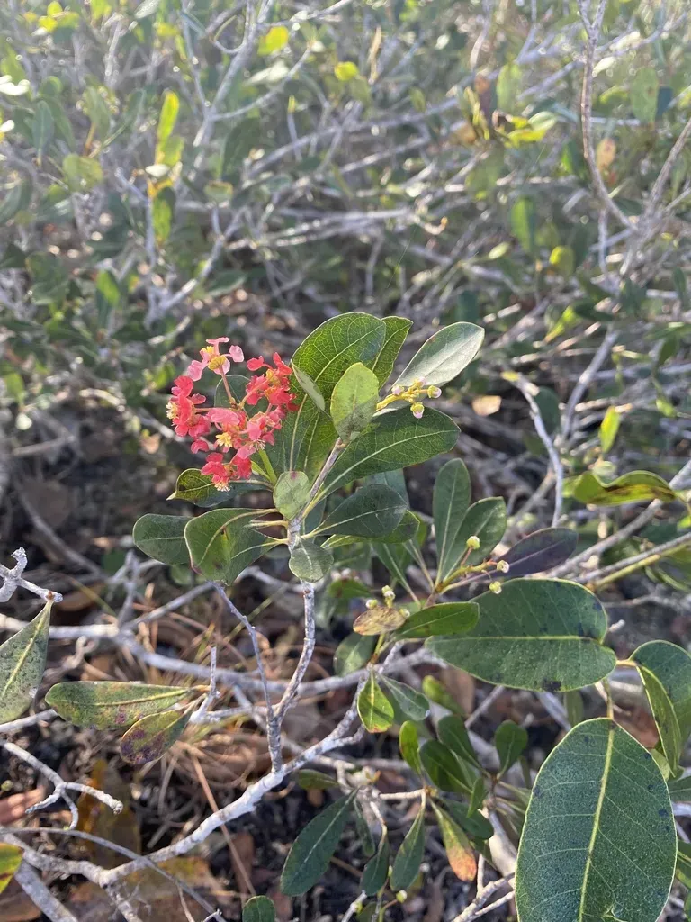 Byrsonima lucida is a multi-trunked shrub or small tree native to Florida and the Caribbean, known for its showy flowers and evergreen foliage.