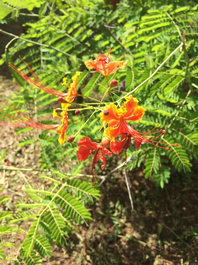 A fast-growing, deciduous shrub or small tree with showy orange-red flowers and fern-like leaves.