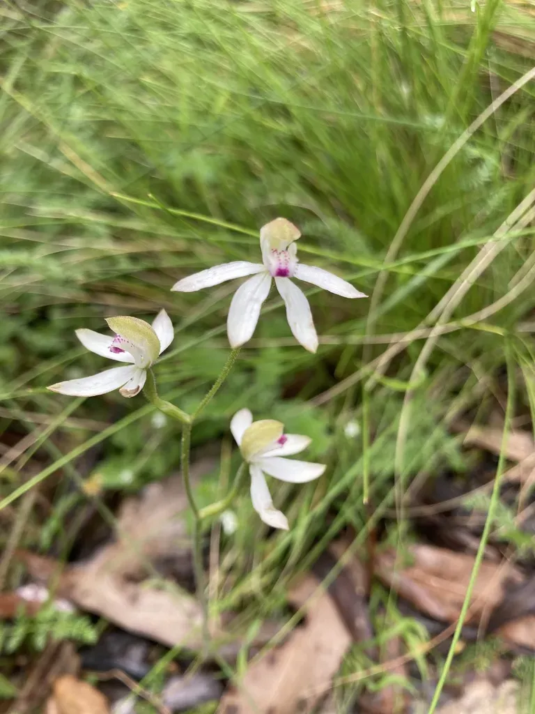 Musky Caladenia (Caladenia Moschata) is a perennial herb in the Orchidaceae family with moderate care difficulty. It requires moderate watering and partial shade or dappled_shade light in USDA hardiness zones 9-11. This plant is safe for cats and dogs.