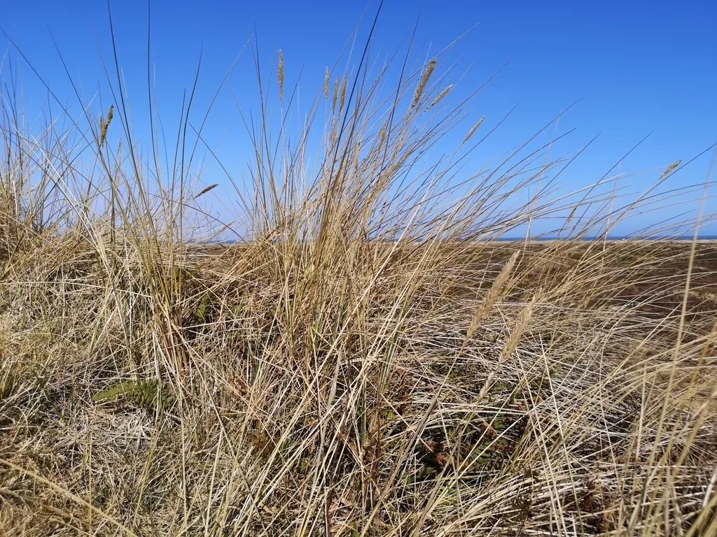 A perennial grass forming stiff, hardy clumps of erect stems up to 1.2 meters in height, typically found on sand dunes and coastal areas.