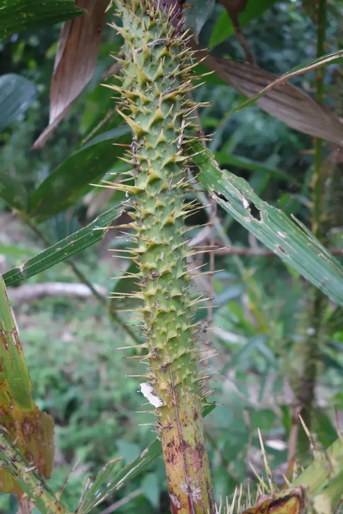 Huang-teng (Calamus Formosanus) is a perennial palm in the Arecaceae family with moderate care difficulty. It requires high watering and partial shade or filtered_light light in USDA hardiness zones 10-11. This plant is safe for cats and dogs.
