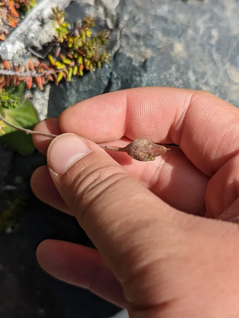 Calceolaria biflora is a low-growing perennial native to southern Argentina and Chile, forming evergreen rosettes with rounded, slightly hairy leaves and bright yellow pouch-like flowers.