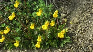 Calceolaria polyrhiza is a species of flowering plant native to Patagonia, thriving in damp grasslands and dry, sandy, windswept steppes.