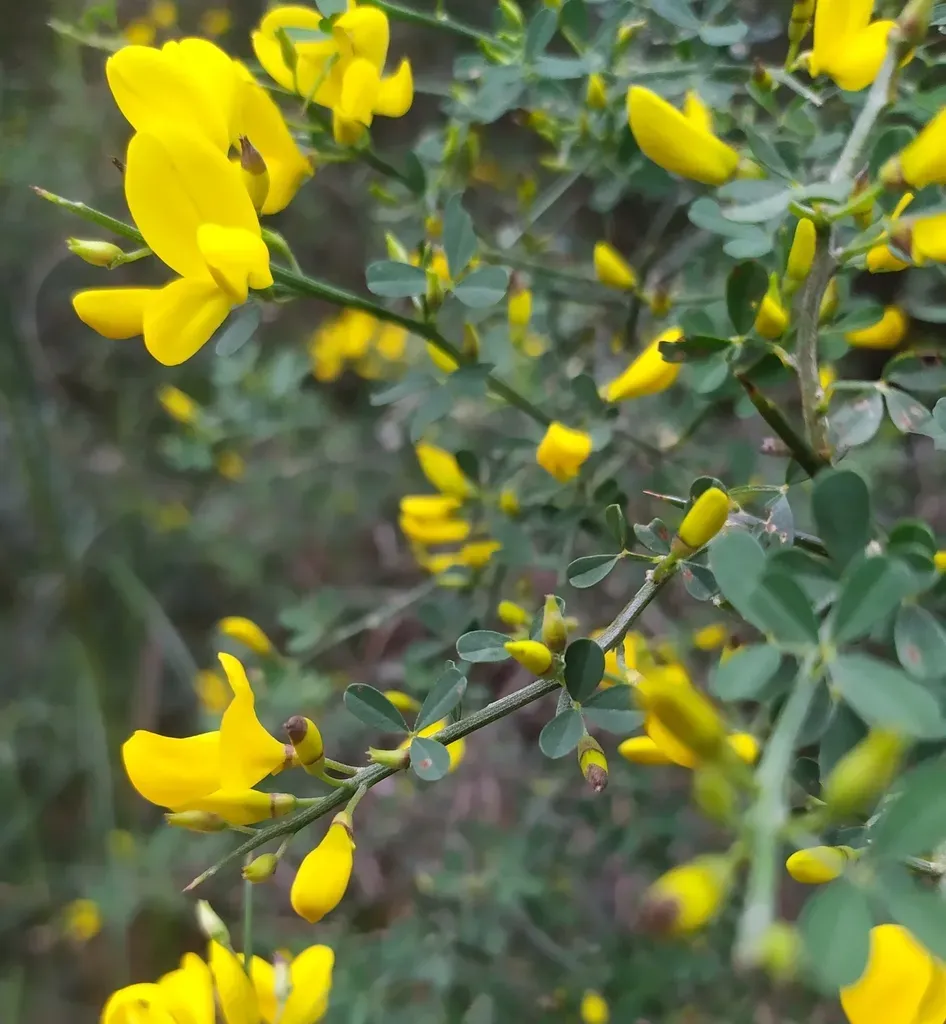 Calicotome spinosa is a very spiny, densely branched shrub belonging to the Fabaceae family, known for its thorny structure and bright yellow flowers.