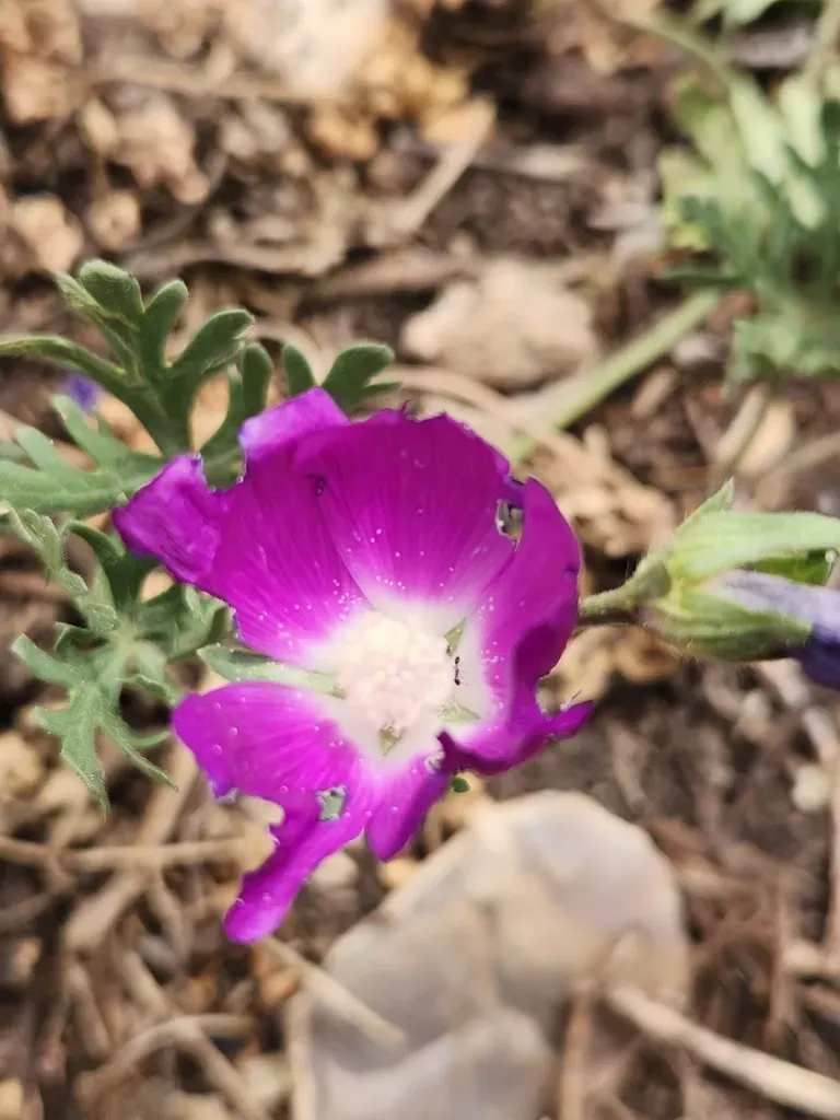 Callirhoe involucrata is a mat-forming perennial wildflower native to the south-central Great Plains of the United States, known for its bright magenta-pink, cup-shaped flowers that bloom in summer.