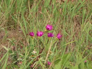 Clustered Poppy-mallow (Callirhoe Triangulata) is a perennial herb in the Malvaceae family with easy care difficulty. It requires moderate watering and full sun light in USDA hardiness zones 4-8. This plant is safe for cats and dogs.