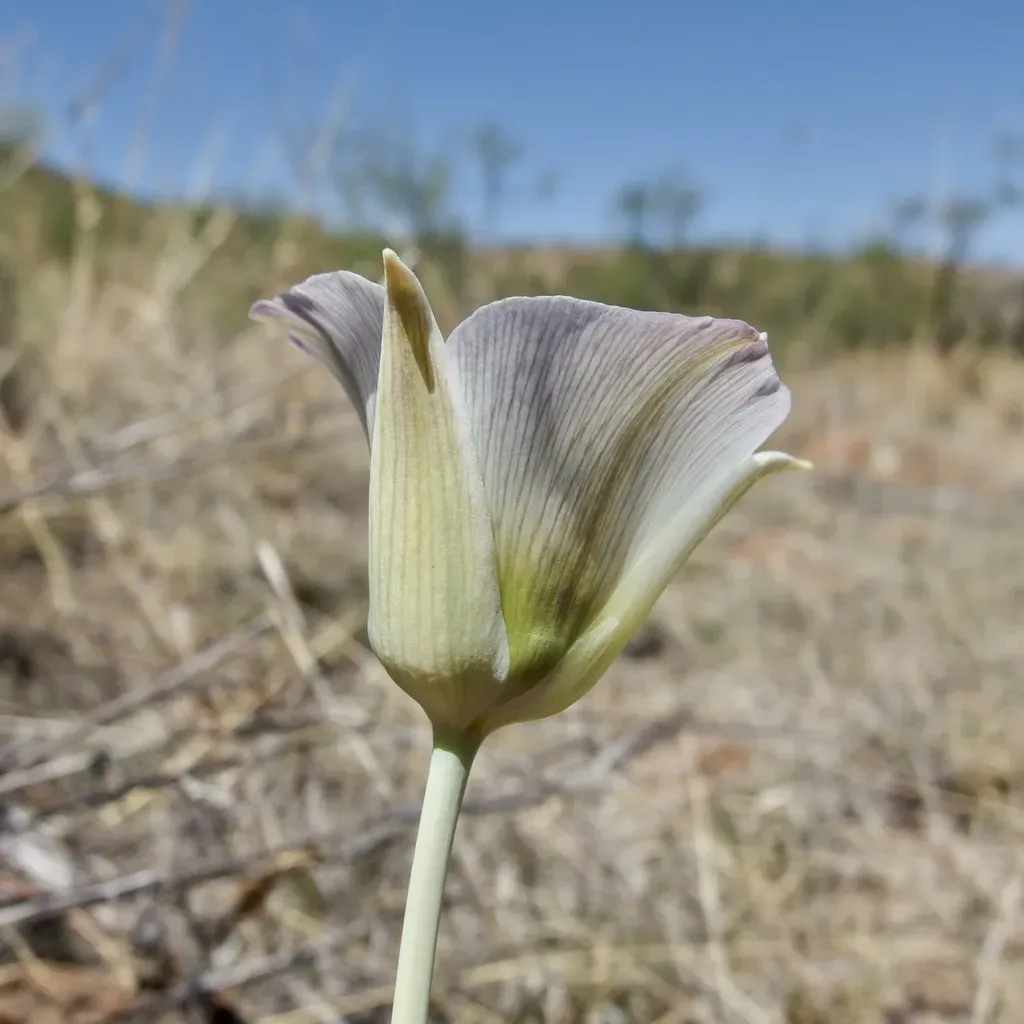 A perennial bulbous plant native to the southwestern United States, known for its elegant white to purplish flowers with three petals and distinctive petal glands.